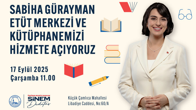 Üsküdar Belediyesi tarafından gençlerin eğitimine ve geleceğine katkı sunmak amacıyla hayata geçirilen “Sabiha Gürayman Etüt Merkezi ve Kütüphanesi”, 17 Eylül Çarşamba günü saat 11.00’de açılacak.