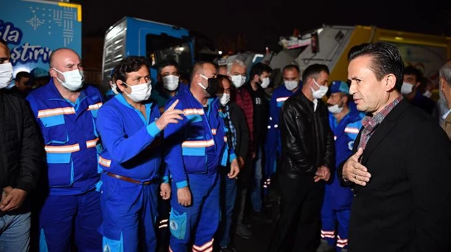 Tuzla Belediye Başkanı Dr. Şadi Yazıcı, sabahın ilk ışıkları ile birlikte daha temiz bir Tuzla için çalışan ve yapmış oldukları çalışmalarla dünya ve Türkiye gündemine oturan temizlik personellerine sürpriz ziyaret gerçekleştirdi. Başkan Yazıcı, özellikle pandemi döneminde gösterilen özverili çalışma ve gayretlerinden dolayı başta temizlik personeli olmak üzere tüm belediye çalışanlarına teşekkür ederek bir de müjde verdi. Yazıcı, zam döneminde olunmamasına rağmen, tüm Tuzla Belediyesi Şirketi çalışanlarına 500 TL'lik zam yapılacağını açıkladı. Çalışanların yüzünü güldüren bu zam haberinden sonra Başkan Yazıcı, göreve çıkan personeli uğurladı.